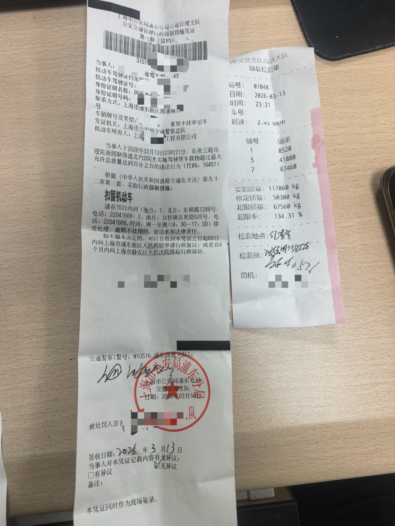 3月13日深夜,3辆满载泥浆的重型槽罐车悄然驶出某施工工地,妄图避开监管违规运送。浦东警方早已经过前期研判把握该批车辆的出行规则,在途经路口将其抄获。经现场过磅检测,3辆车总质量别离为117吨、111吨、104吨,超限率别离达到了134%、121%、113%,归于典型的“百吨王”严峻超载违法车辆,其超载行为已构成严峻事端隐患。民警当即依法操控涉案车辆及驾驶员,固定相关违法根据。